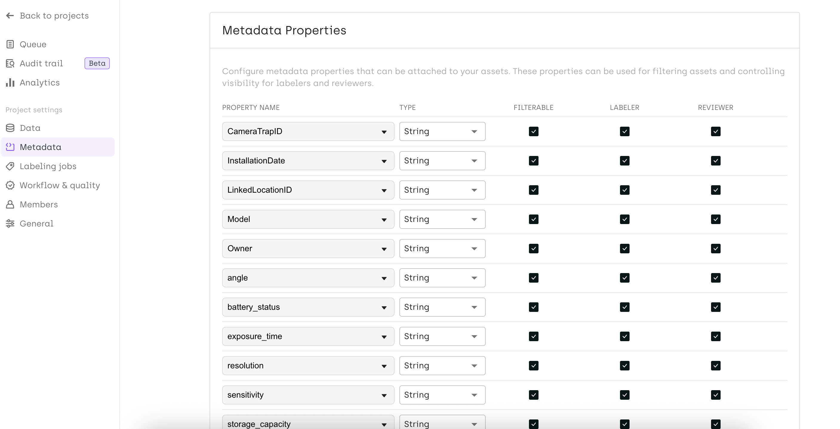 Metadata properties define additional fields attached to each asset in your project. They help you: