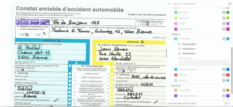 Kili Technology provides an interface for automatic transcription (or optical character recognition (OCR)) to extract text information from: